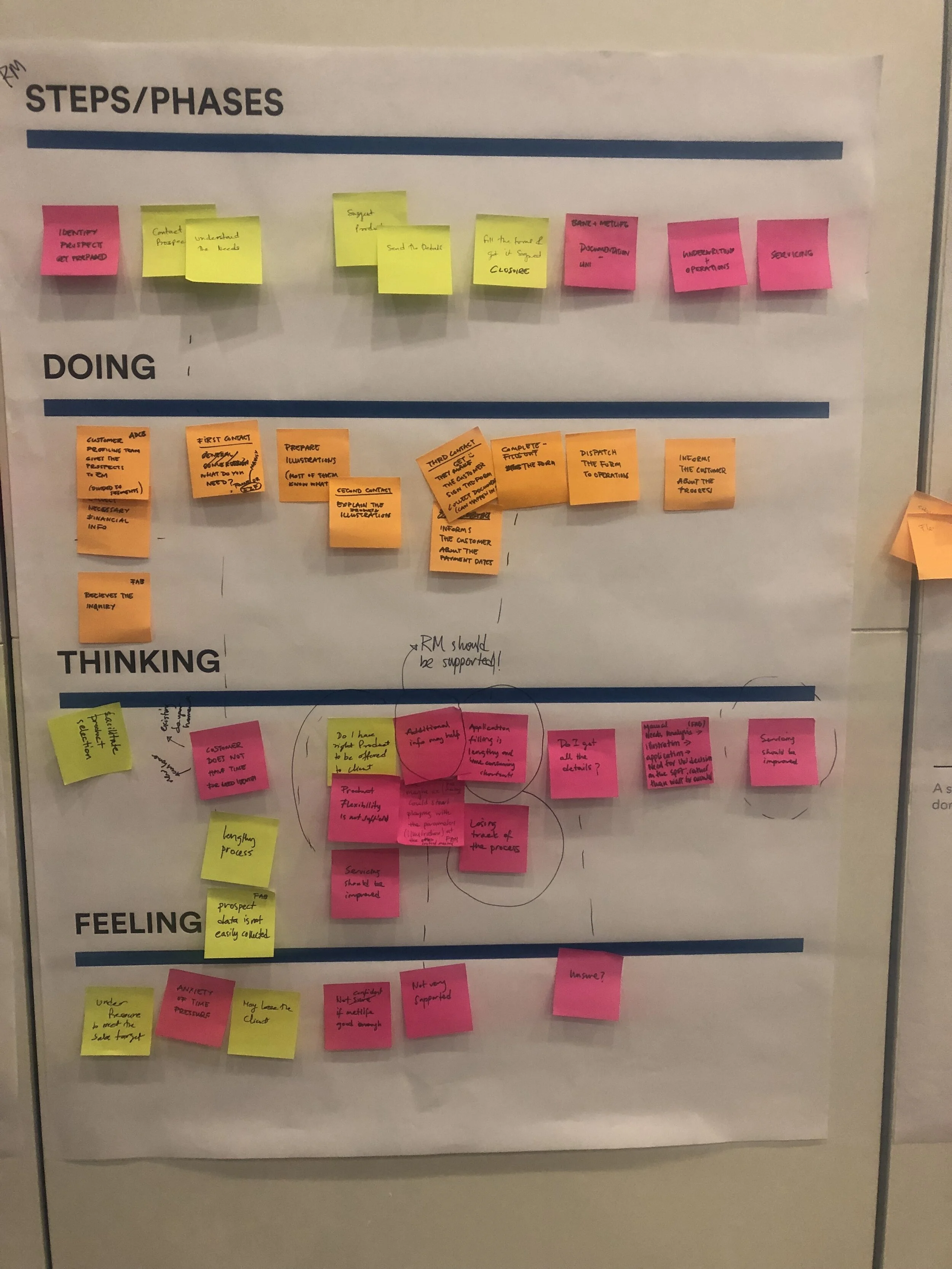 An immersive design thinking workshop took place in Dubai to understand RM pain points while also creating user stories, and multiple empathy maps with numerous groups of RMs.