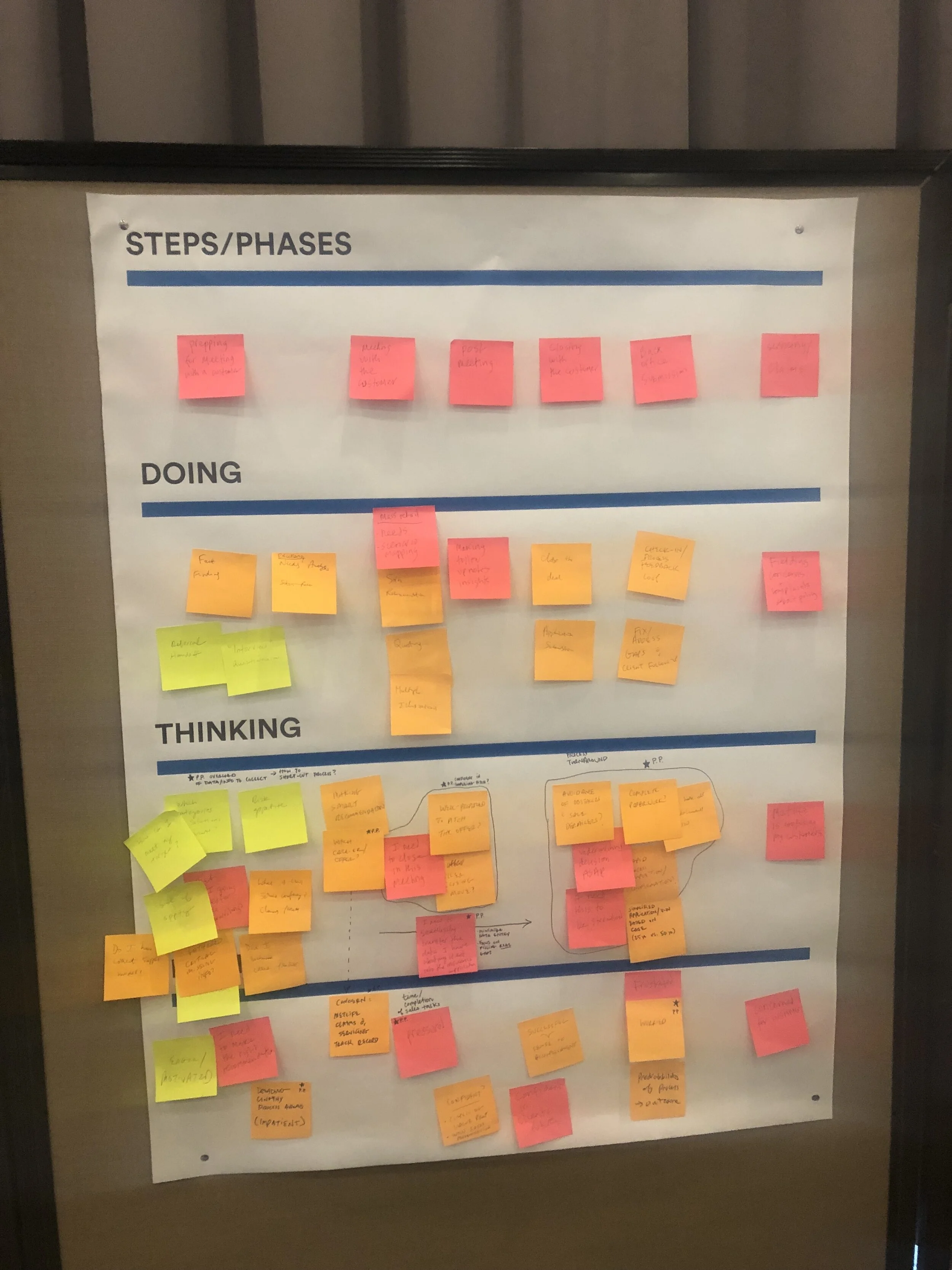 During the As-Is mapping activity, participants combined what they knew about a user’s behavior/mentality with their own experience using the pre-existing sales app through a series of steps and themes.
